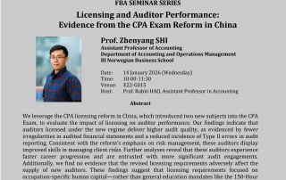 FBA Seminar Series: “Licensing and Auditor Performance: Evidence from the CPA Exam Reform in China” by Prof. Zhenyang SHI
