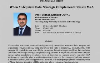 FBA Seminar Series: “When AI Acquires Data: Strategic Complementarities in M&A” by Prof. Vidhan Krishan GOYAL