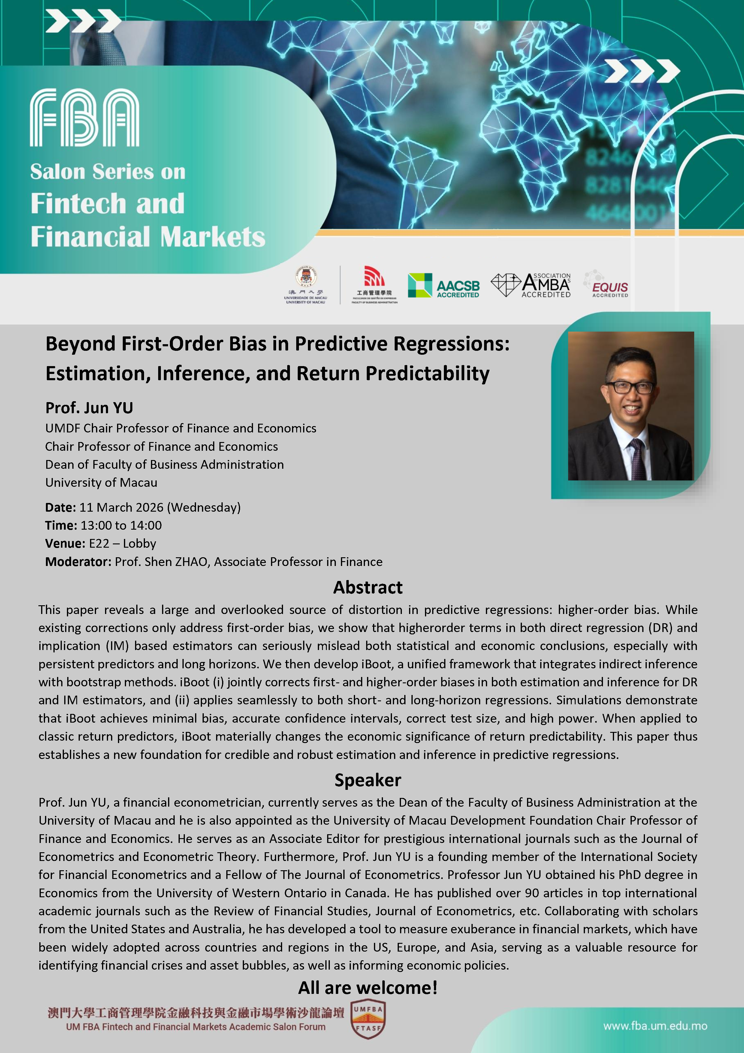 Prof. Shen ZHAO Associate Professor of Finance University of Macau Date: 20 November 2024 (Wednesday) Time: 13:00 to 14: ...
