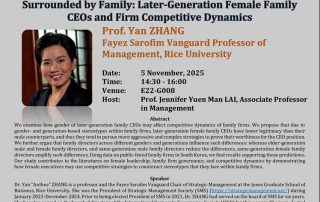 UM Distinguished Visiting Scholar Seminar “Surrounded by Family: Later-Generation Female Family CEOs and Firm Competitive Dynamics” by Prof. Yan ZHANG GalleryUM Distinguished Visiting Scholar Seminar “Surrounded by Family: Later-Generation Female Family CEOs and Firm Competitive Dynamics” by Prof. Yan ZHANG