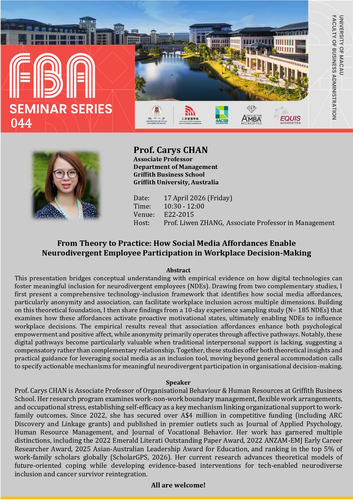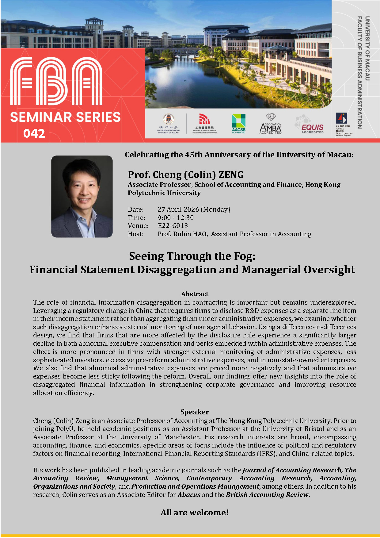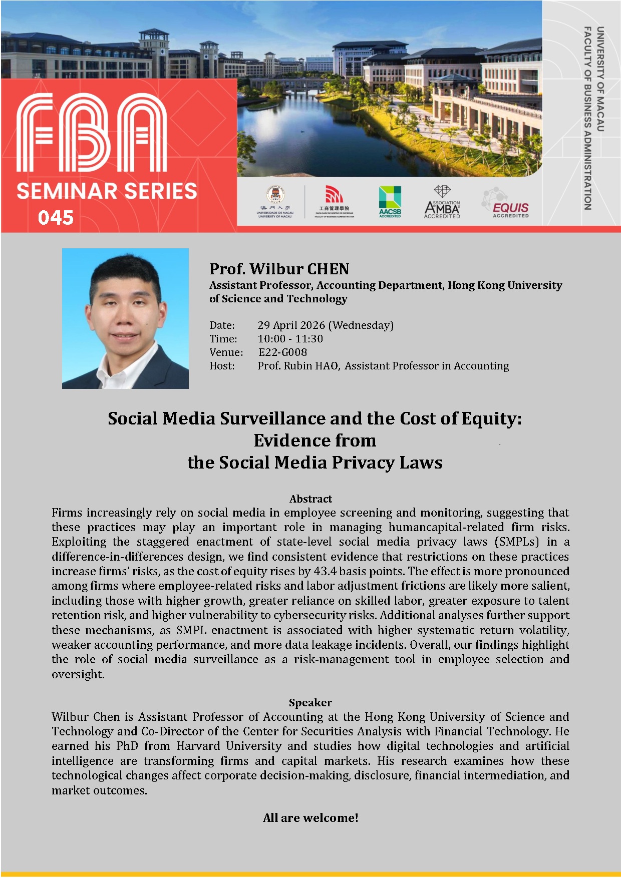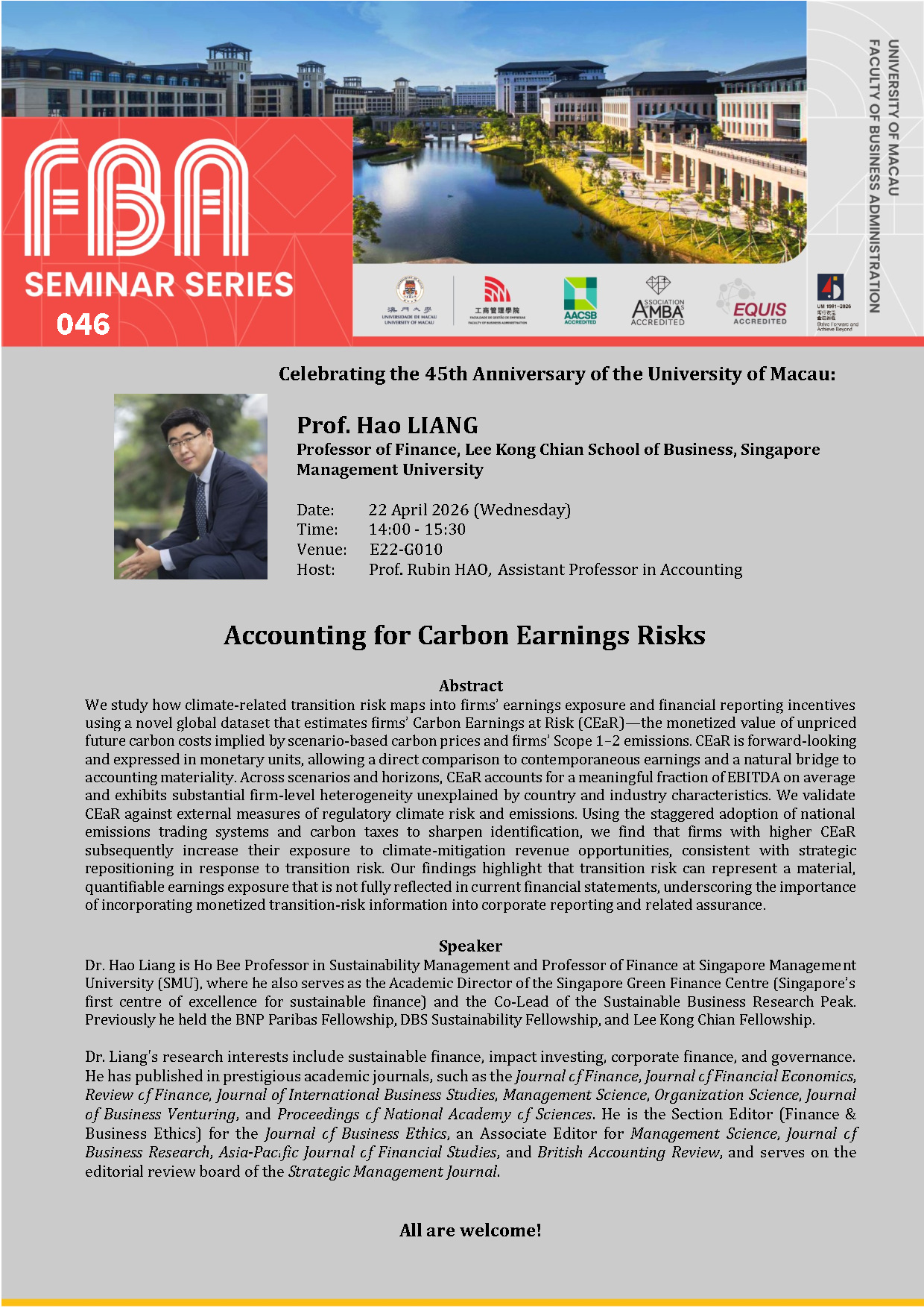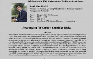 FBA Seminar Series: “Accounting for Carbon Earnings Risks” by Prof. Hao LIANG