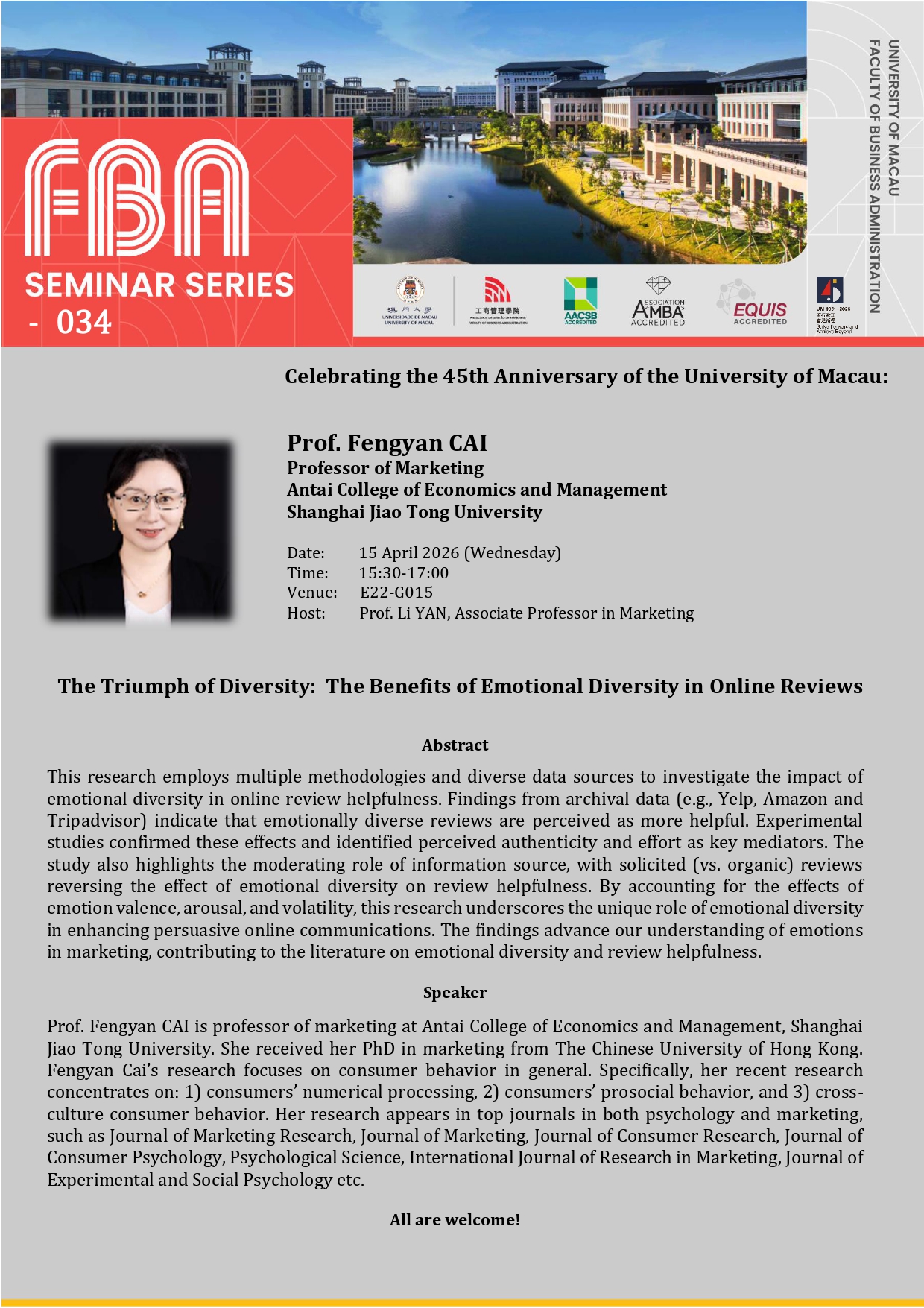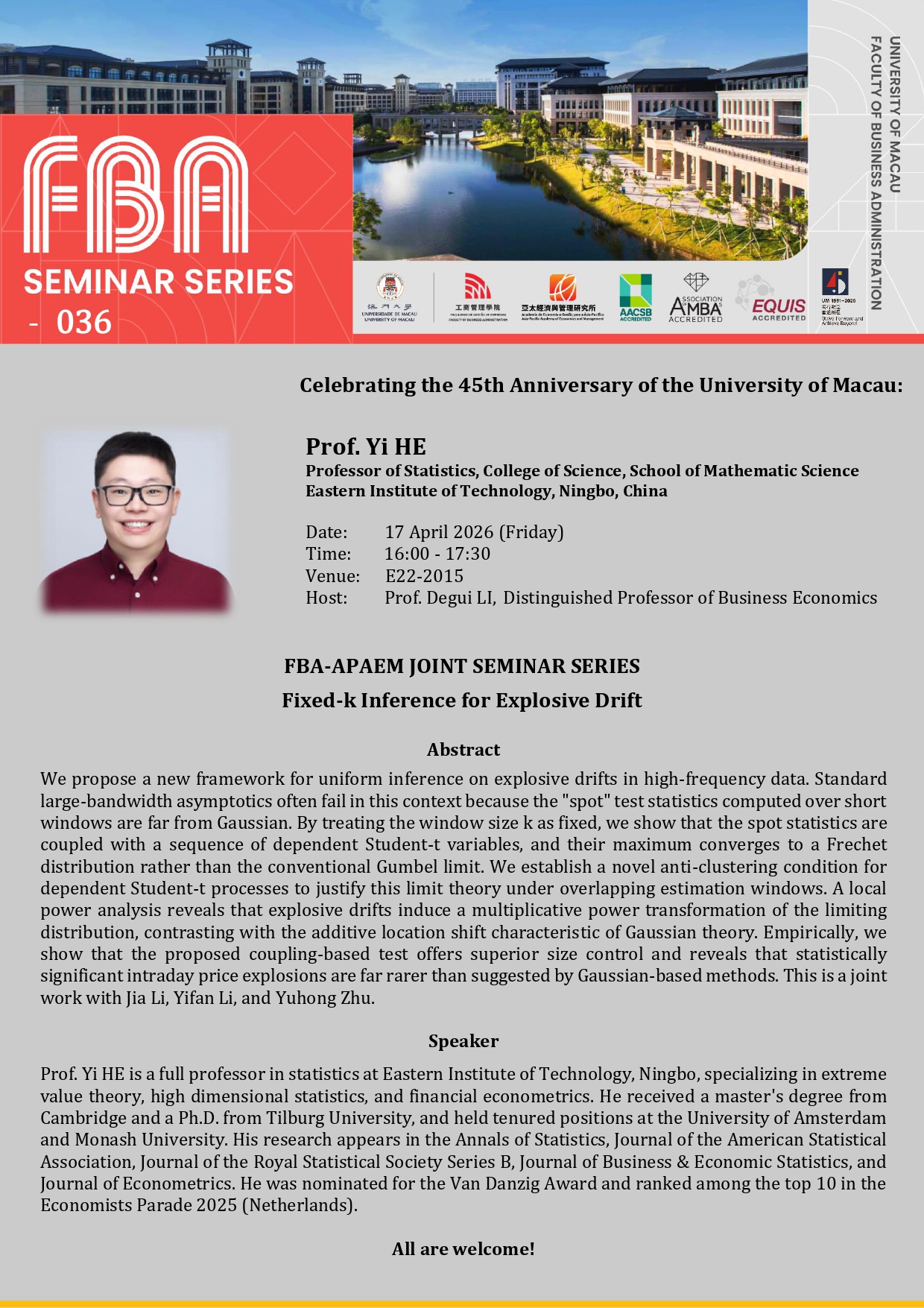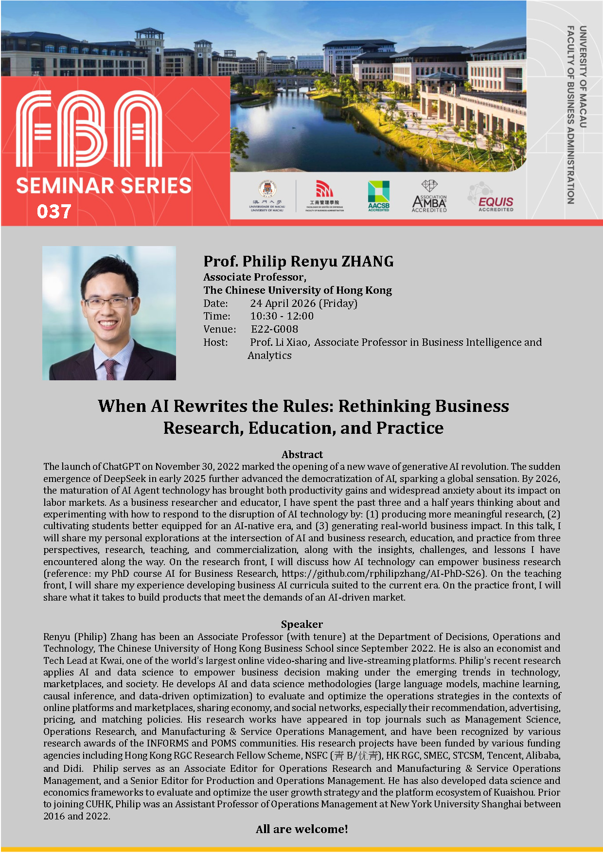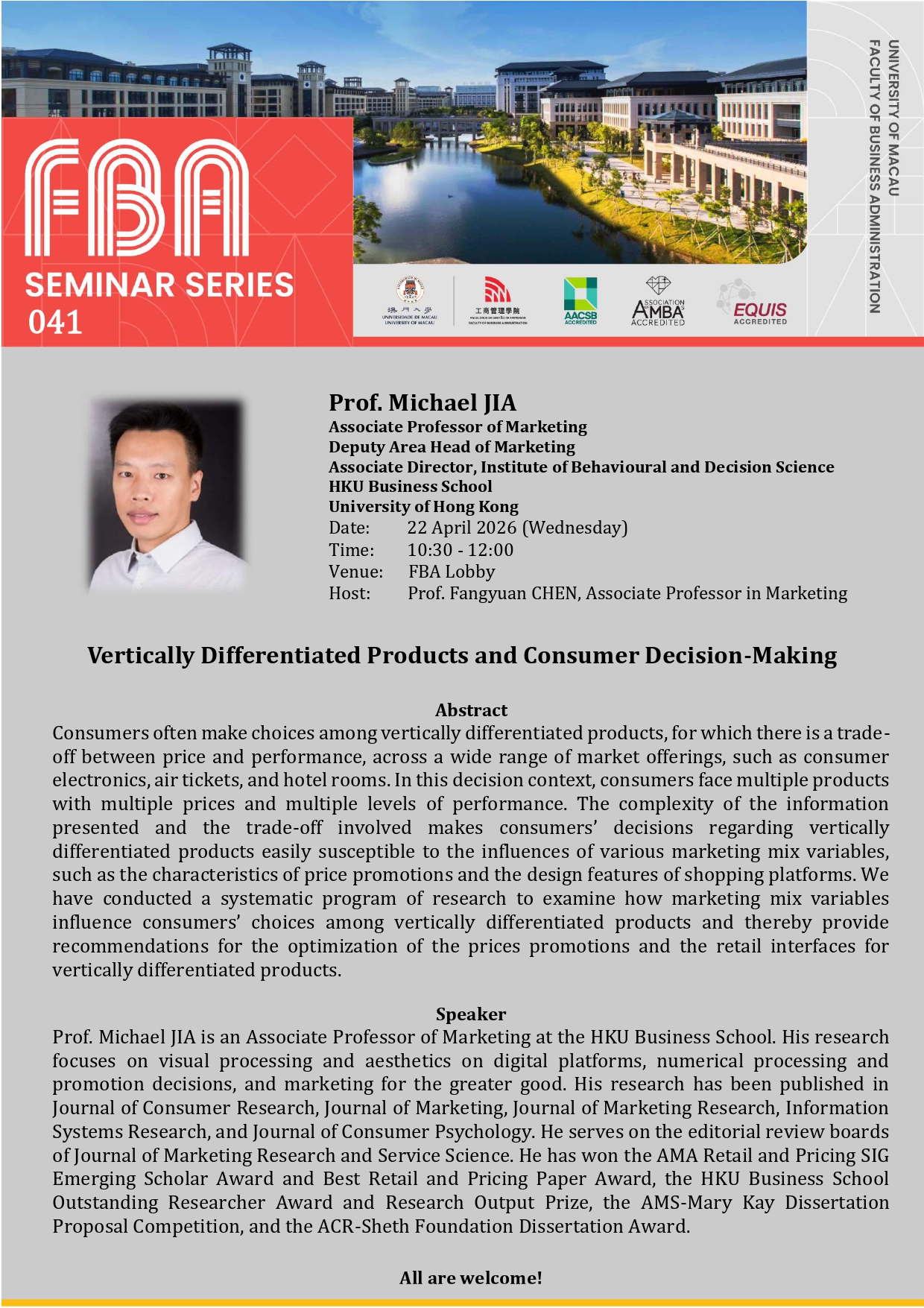 FBA Seminar Series: “Luck and Performance under Rare Events” by Prof. Shige MAKINO
