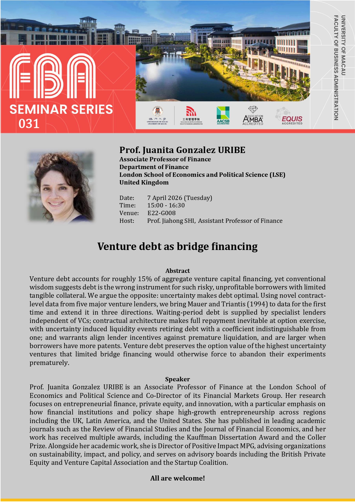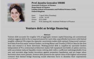 FBA Seminar Series: “Venture debt as bridge financing” by Prof. Juanita Gonzalez URIBE