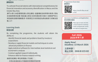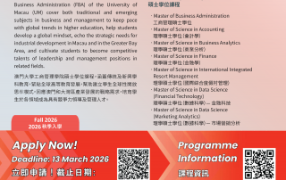 The Faculty of Business Administration (FBA) at the University of Macau ranked among the top five schools in Asia based on publications in top finance journals in 2025 GalleryThe Faculty of Business Administration (FBA) at the University of Macau ranked among the top five schools in Asia based on publications in top finance journals in 2025
