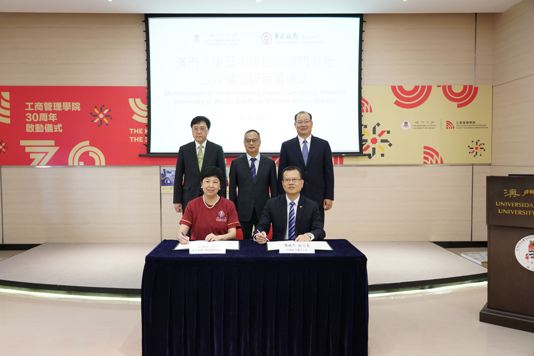 The University of Macau (UM) Faculty of Business Administration (FBA) held a kick-off ceremony to celebrate its 30th anniversary on 11 November. Over the past 30 years, the faculty has produced many outstanding graduates for society and has earned international recognition for its high-quality business education. FBA is Macao’s first business school that has earned accreditation from both the Association to Advance Collegiate Schools of Business (AACSB) and the Association of MBAs (AMBA). It is also a full member of the European Foundation for Management Development (EFMD).