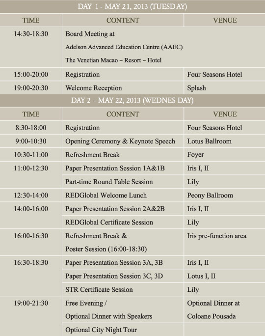 Conference Schedule Day 1&2 | Conference Schedule Day 2&4