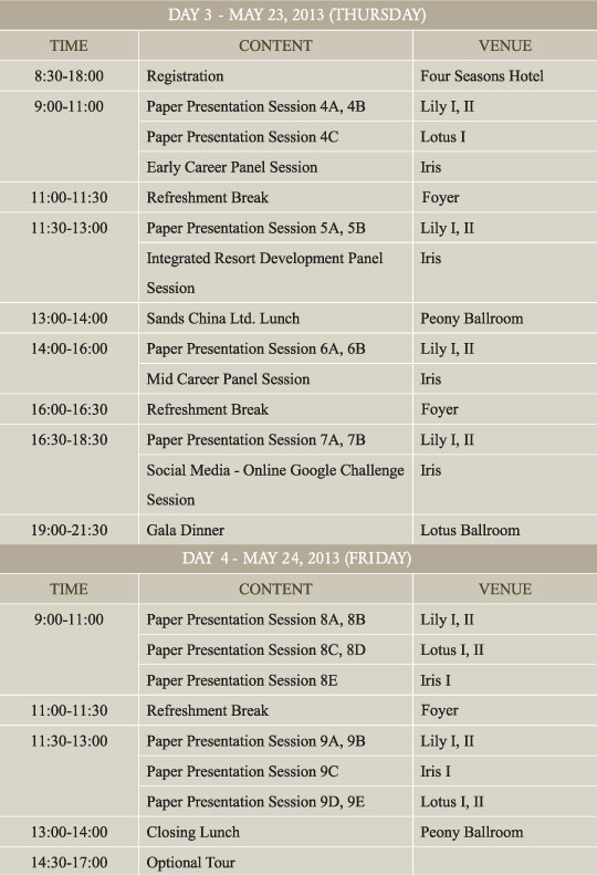 Conference Schedule Day 1&2 | Conference Schedule Day 2&4