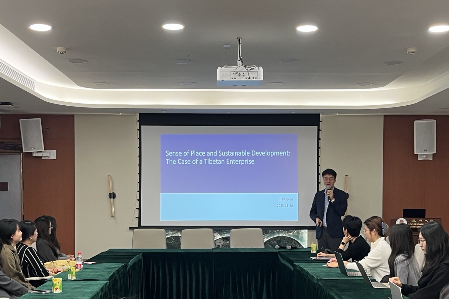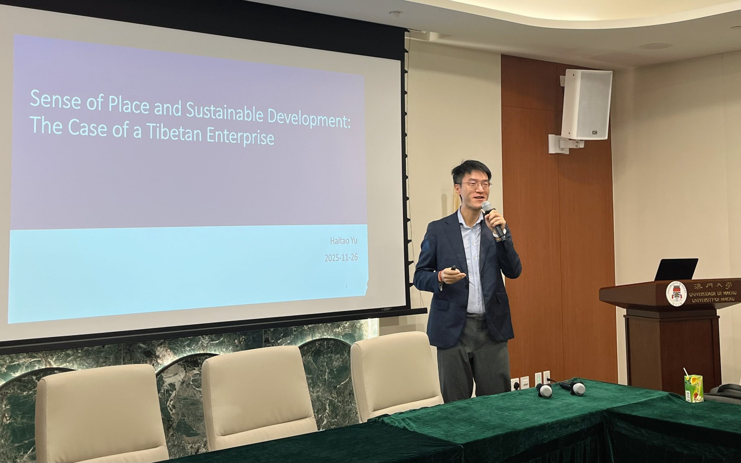 2025年11月26日,澳門大學管理學助理教授余海濤博士以「地方感與可持續發展:一個西藏奢侈品企業的案例研究」為題,帶來了一場深入而動人的學術分享。 1從個人研究認同到理論建構 余海濤助理教授開場便坦誠分享了自己的研究身份與背景:作為一位來 ...