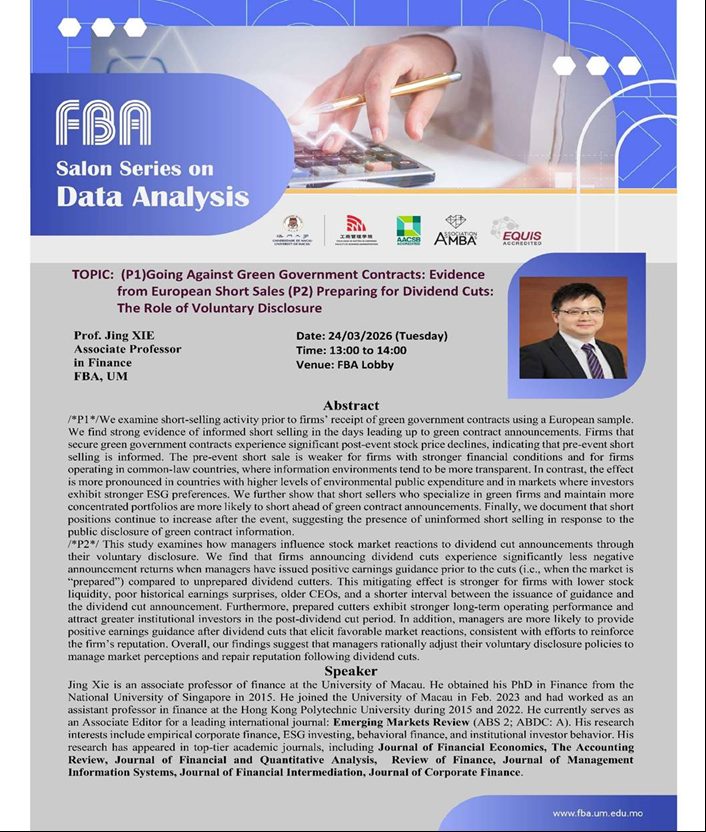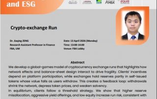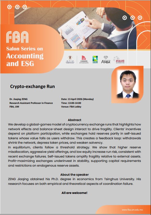 Crypto-exchange Run Dr. Jiaqing ZENG Research Assistant Professor in Finance FBA, UM Date: 13 April 2026 (Monday) Time: ...