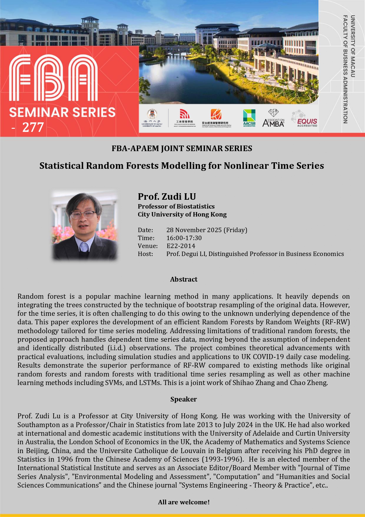 FBA Seminar Series: “Near-Optimal Dispatch Policies for Emergency Medical Services” by Prof. Tong WANG