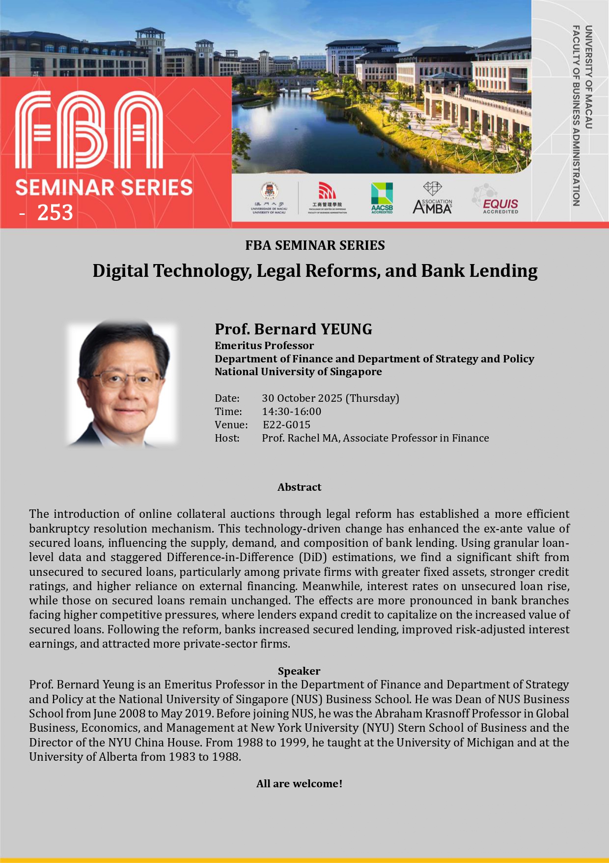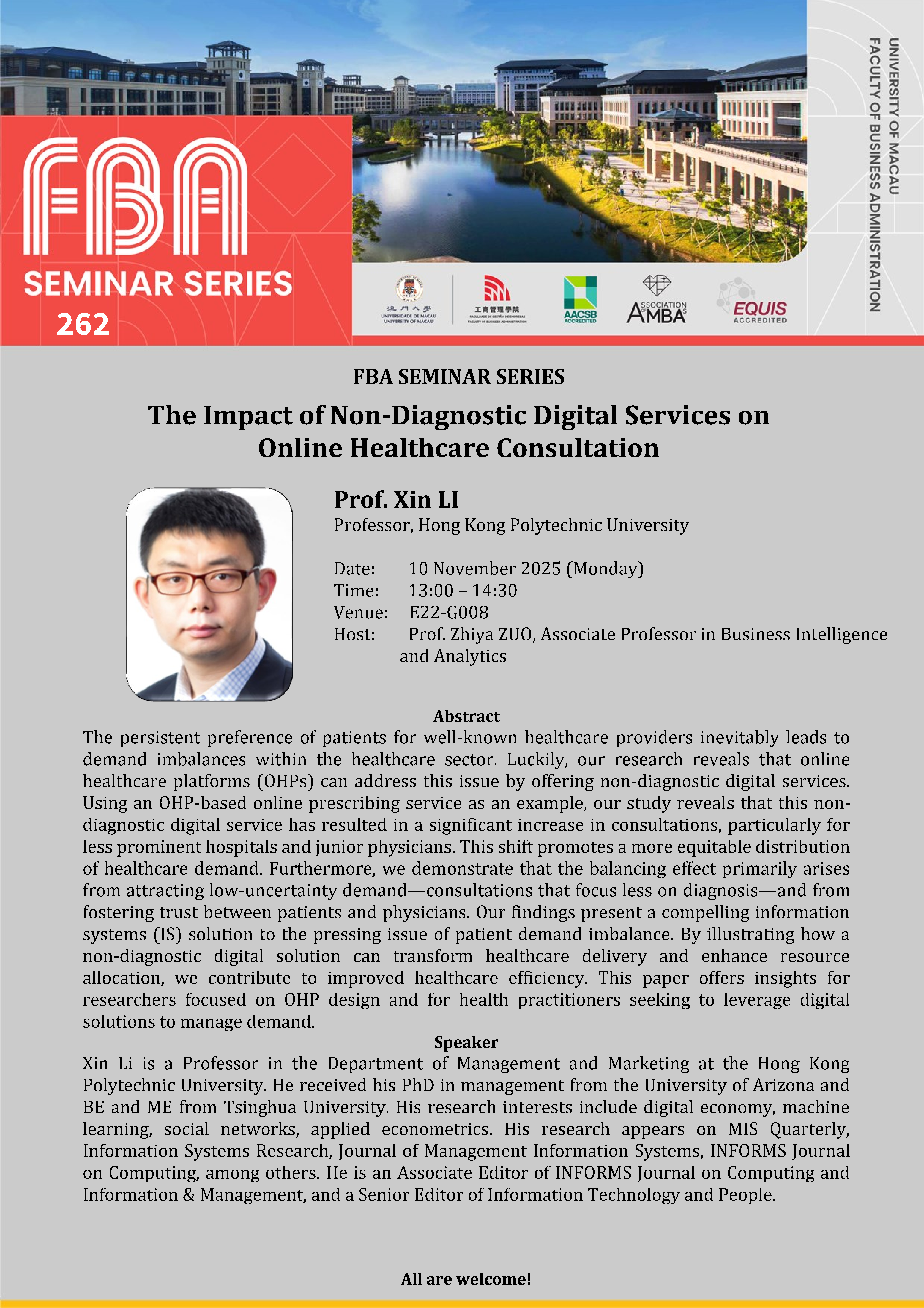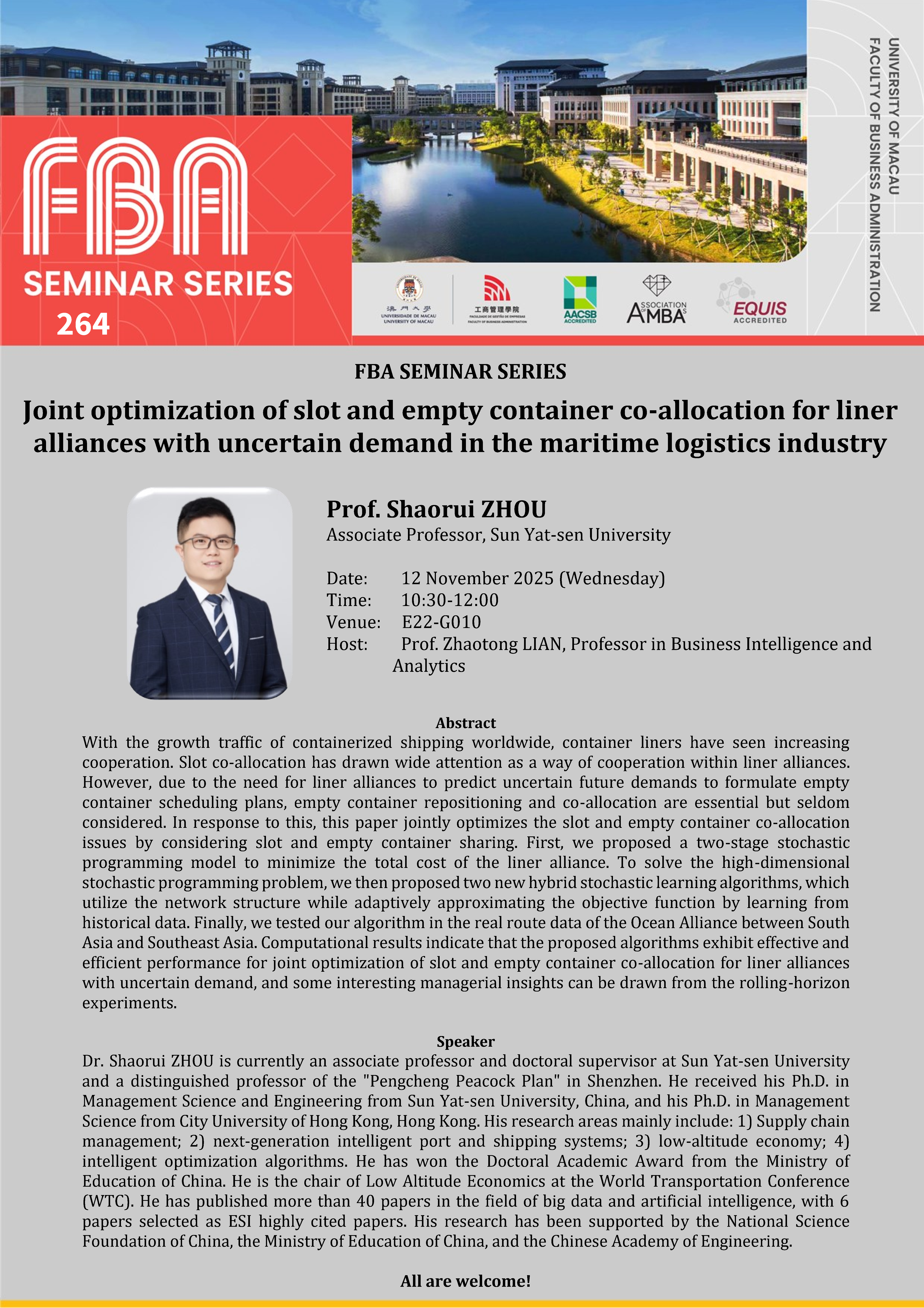 FBA Seminar Series: “Joint optimization of slot and empty container co-allocation for liner alliances with uncertain demand in the maritime logistics industry” by Prof. Shaorui ZHOU