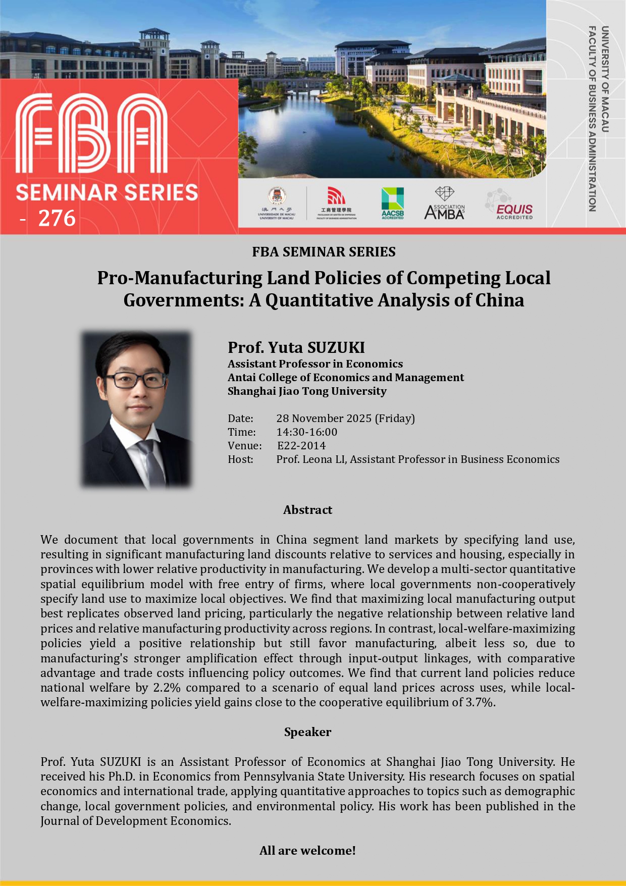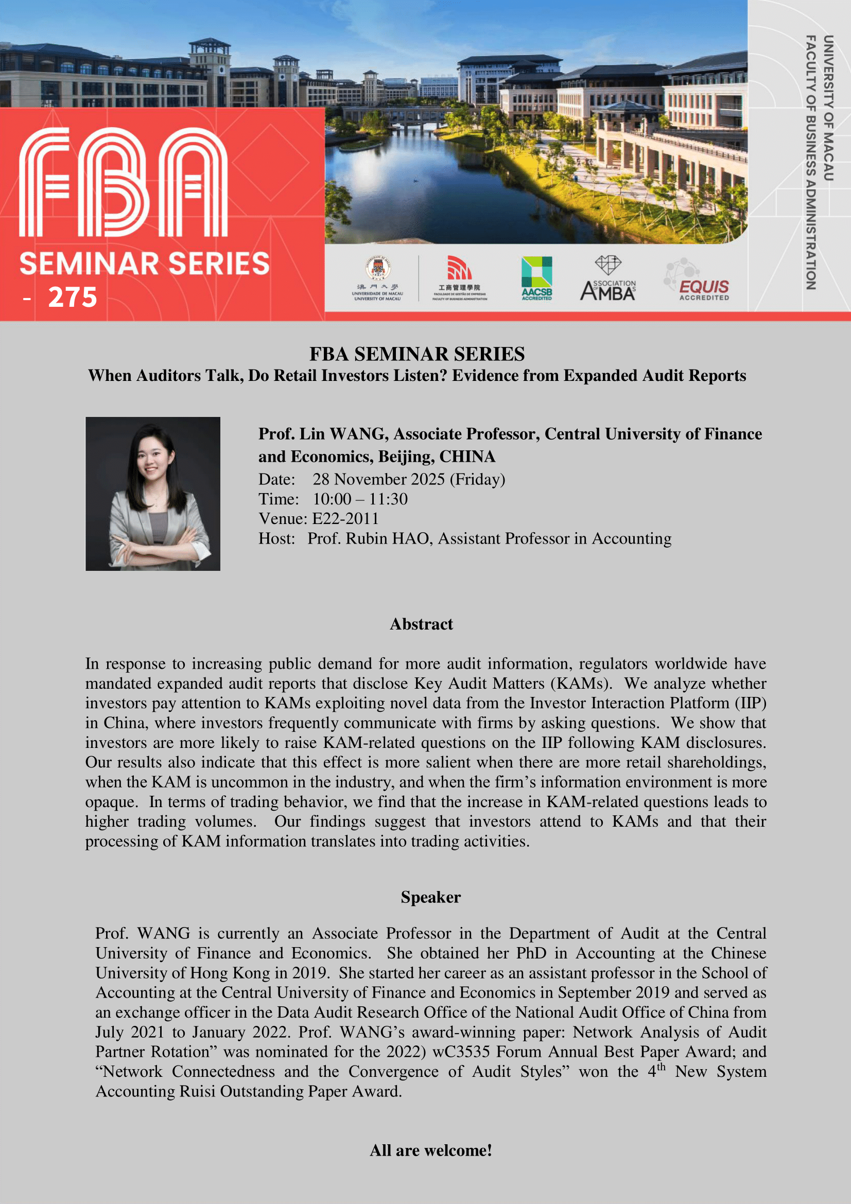 FBA Seminar Series: “The Granularity of Wait Time Information” by Prof. Yiming ZHANG