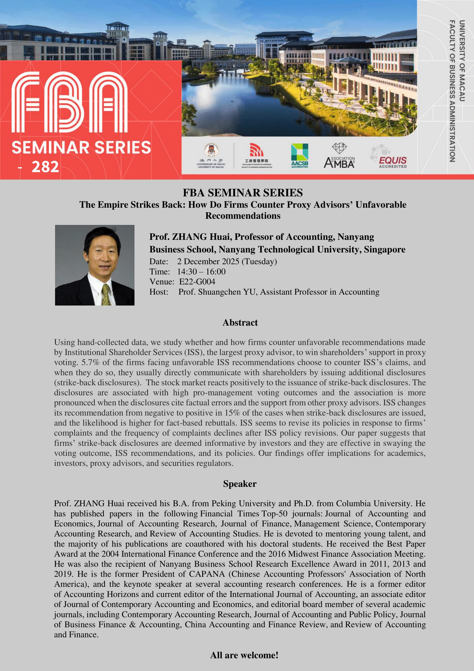 FBA Seminar Series: “How do Sanctions Shape Global Supply Chains?” by Prof. Jing WU